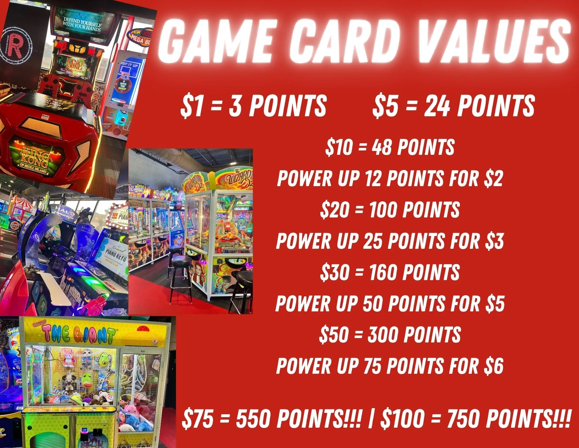 Play our arcade games, earn tickets and redeem them for exciting prizes. Whether you're celebrating a birthday or looking for a fun night out with friends or family, our arcade guarantees an unforgettable experience filled with laughter and friendly competition.